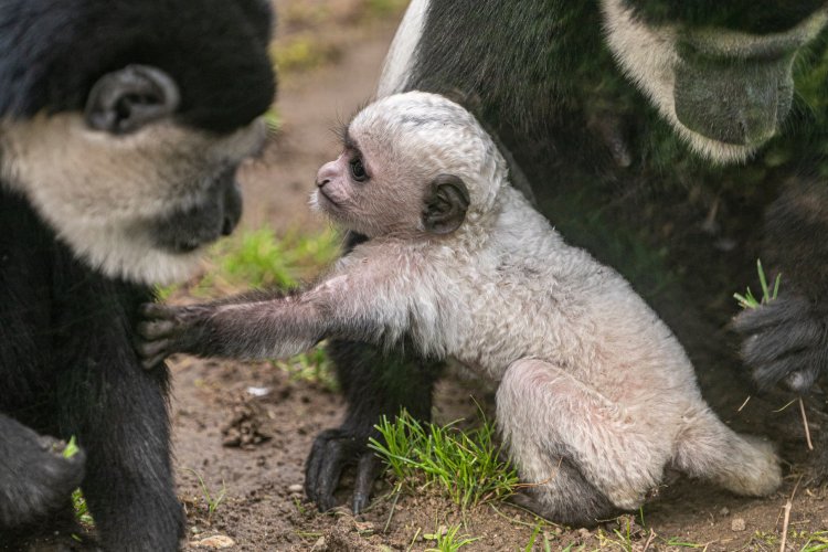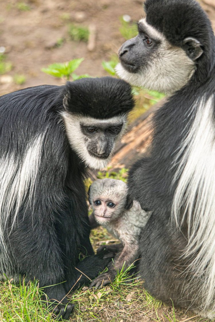 A Nyíregyházi Állatparkban az Európai Fajmegőrzési Programban él egy tenyészcsapat, mely a 2 és fél héttel ezelőtt született aprósággal immár 5 tagot számlál. Feltűnő megjelenésük 100 évvel ezelőtt csaknem a vesztüket okozta: fehér szőrgallérjukat az afrikai törzsek fejdísz készítésére használták, és Európában is nagy volt a kereslet a bundájuk iránt. A hathatós védelmi intézkedéseknek hála, mára állományaik stabilnak mondhatóak, de napjainkban is a faj fennmaradását az orvvadászat és az élőhelyek elvesztése veszélyezteti. A fél évig tartó vemhesség után azonban most Nyíregyházán is világra jött egy kölyök.