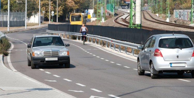 Helyes magatartás: egyemben kmással szözlekedő járművek egymás mellett történő elhaladása, kerékpárosok zavartatása nélkül. Fotó: internet