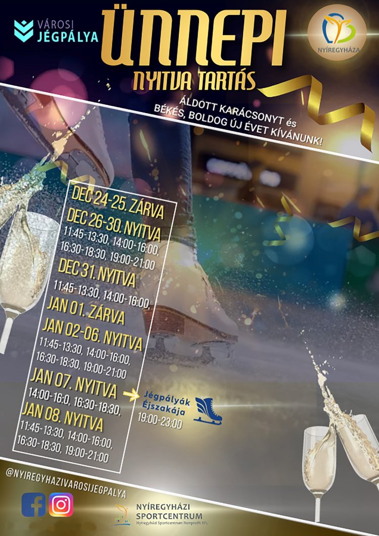 Aki szeretné ledolgozni a Karácsonykor felszedett kilókat, vagy csak egy sportos kikapcsolódásra vágyik és jó közösségben szeretne lenni, annak ajánljuk a Városi Jégpályát. A téli szünet végéig lehet korcsolyázni. Íme a nyitvatartás: