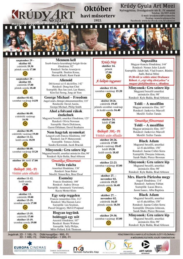 Október havi műsorterv a Krúdy Moziban – Ahol a folyami rákok énekelnek újra műsoron