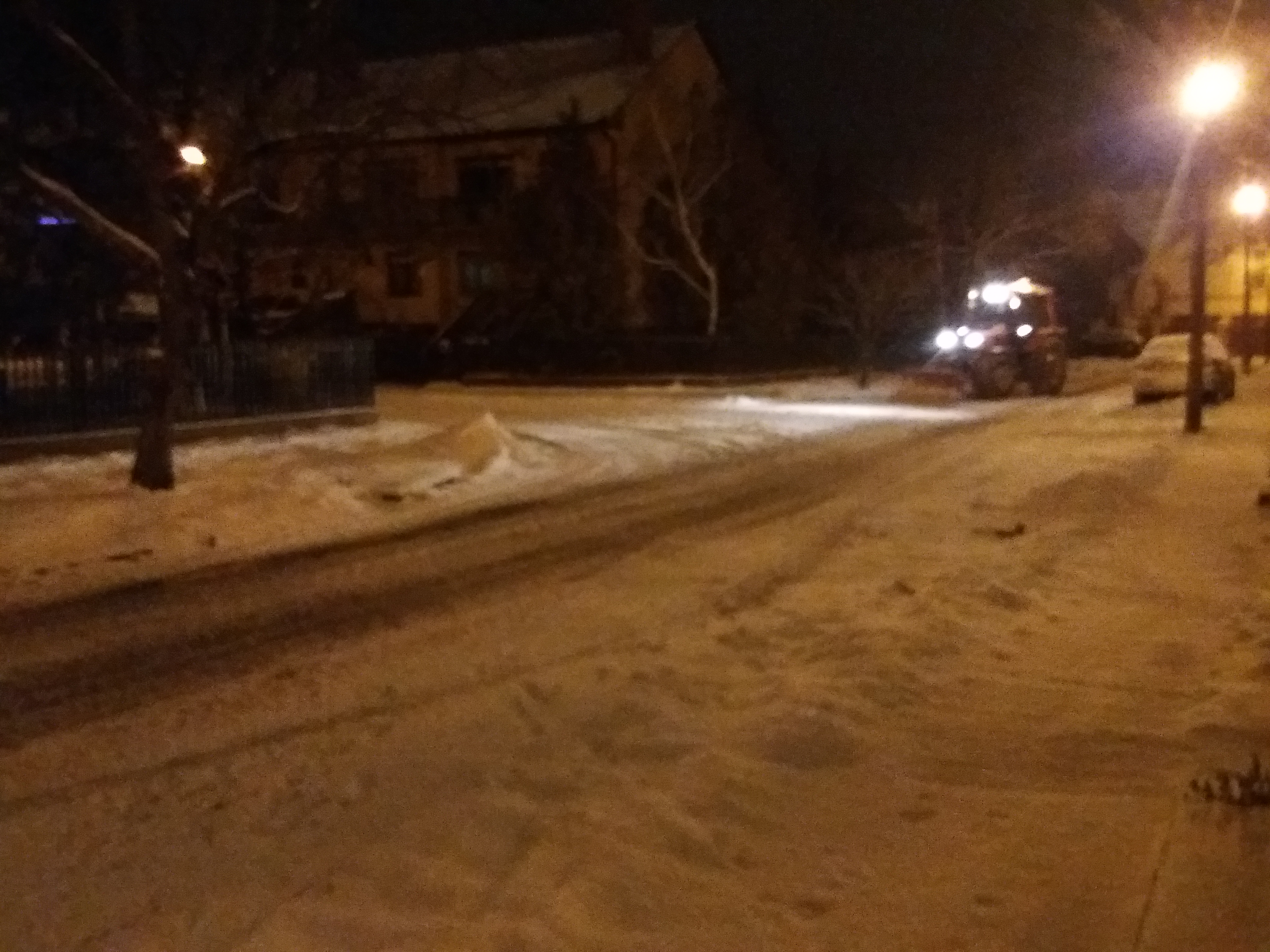 A fotókon szereplő mellékutcába az időjárási viszonyokhoz képest hamar eljutottak a munkagépek és rövid időn belül járhatóvá tették az úttestet.