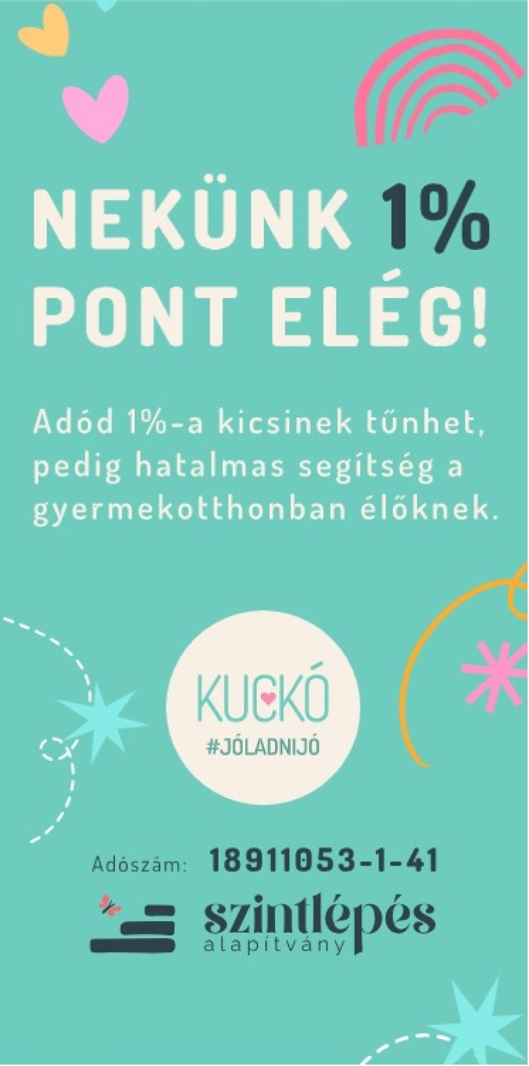 A személyi jövedelemadó 1%-ának felajánlásáról évről-évre rengetegen megfeledkeznek: 10 adózóból mindössze 4 rendelkezik adója 1%-áról valamely fontos társadalmi ügyet támogató, nonprofit szervezet javára. A Kuckó Program és a Szintlépés Alapítvány a „Nekünk 1% pont elég!” című kampányban arra hívja fel a figyelmet, hogy a legapróbb összeg is hatalmas segítség lehet a gyermekotthonban élőknek.