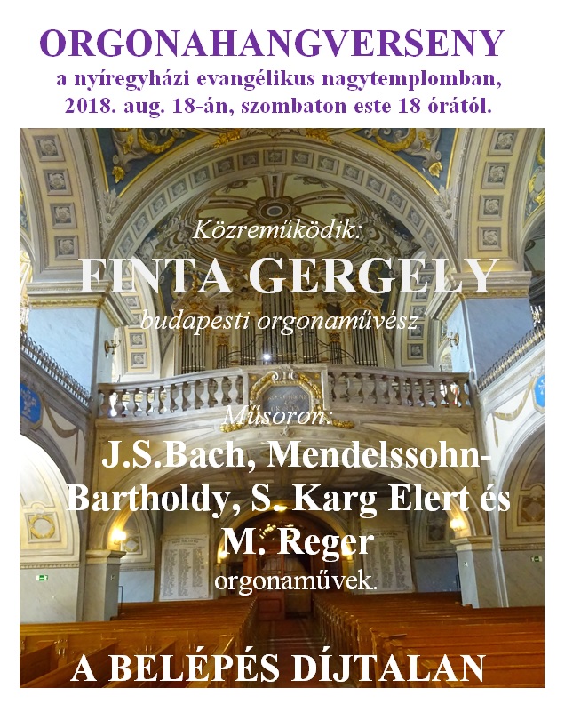 Műsorra kerülnek J.S.Bach, Mendelssohn-Bartholdy, S. Karg Elert és M. Reger orgonaművei.