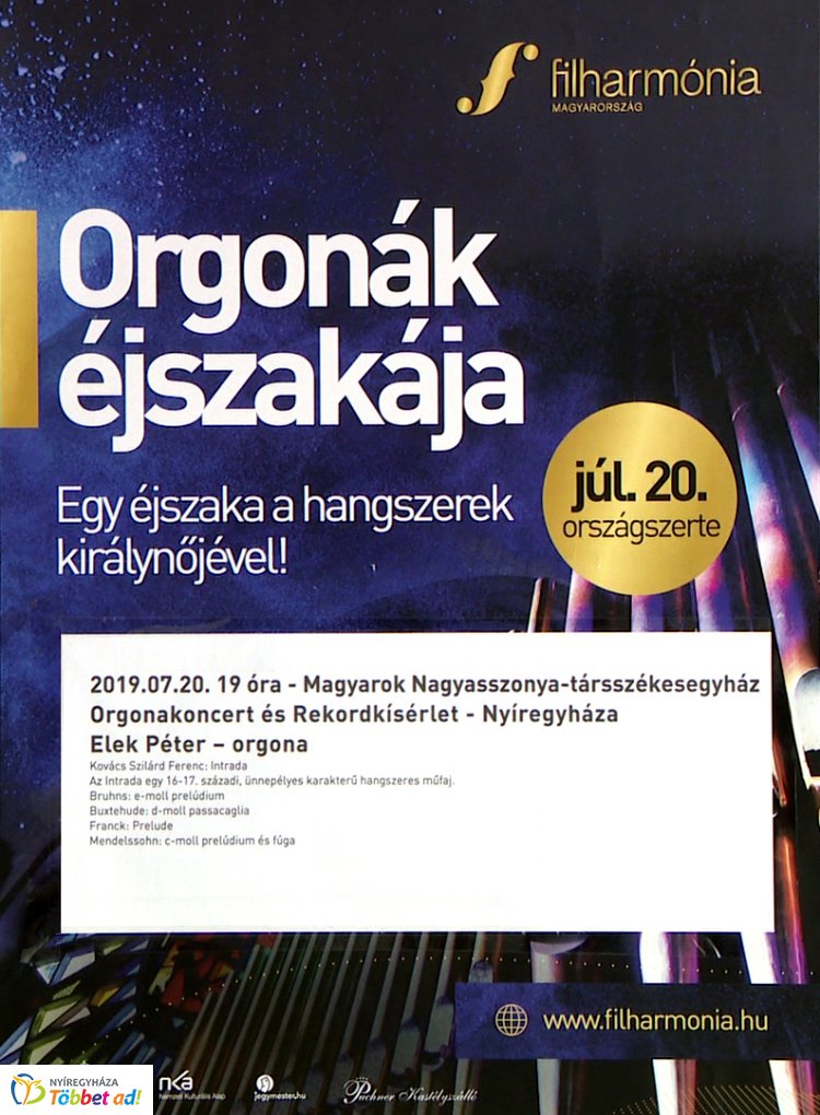 Orgonák éjszakája - Orgonakoncert és rekordkísérlet Nyíregyházán!