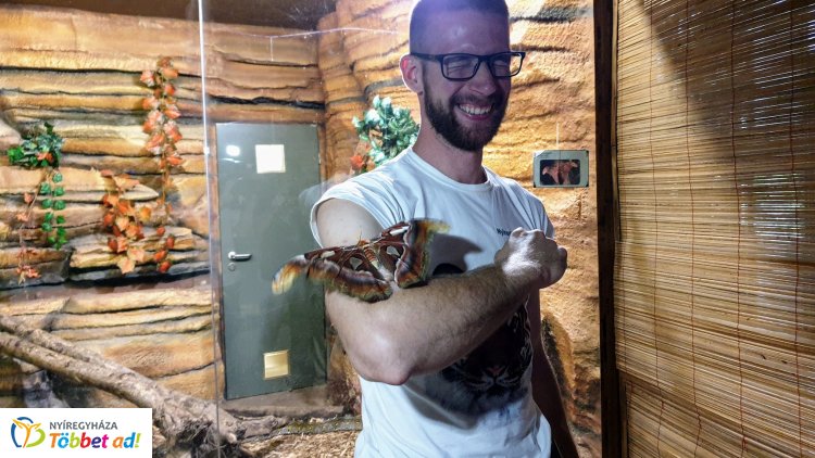 Egy kíváncsi pitonnal lakik egy albérletben az állatpark másik csodája, egy több mint 20 centiméteres Atlaszlepke. A világ egyik legnagyobb lepkéje most először látható az indonéz esőerdőházban.