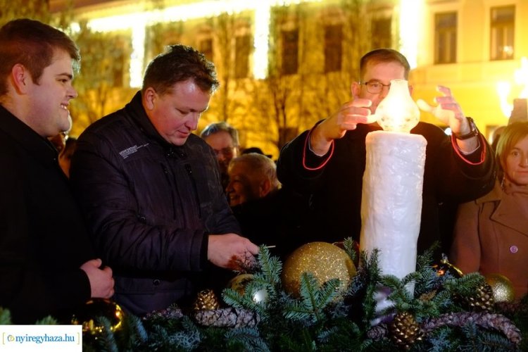 A karácsonyi műsor után Csordás Gábor, római katolikus plébános és Nyíregyháza alpolgármestere, dr. Ulrich Attila lépett a város adventi koszorújához. Ők gyújtották meg a soron következő, harmadik gyertyát. A romai katolikusok adventi koszorúján ez a gyertya általában rózsaszínű és az örömöt szimbolizálja. A keresztények ilyenkor annak örülnek, hogy rövidesen eljön közéjük a megváltó. A Kossuth téren így aztán sokan örültek a műsornak és a fényeknek is.