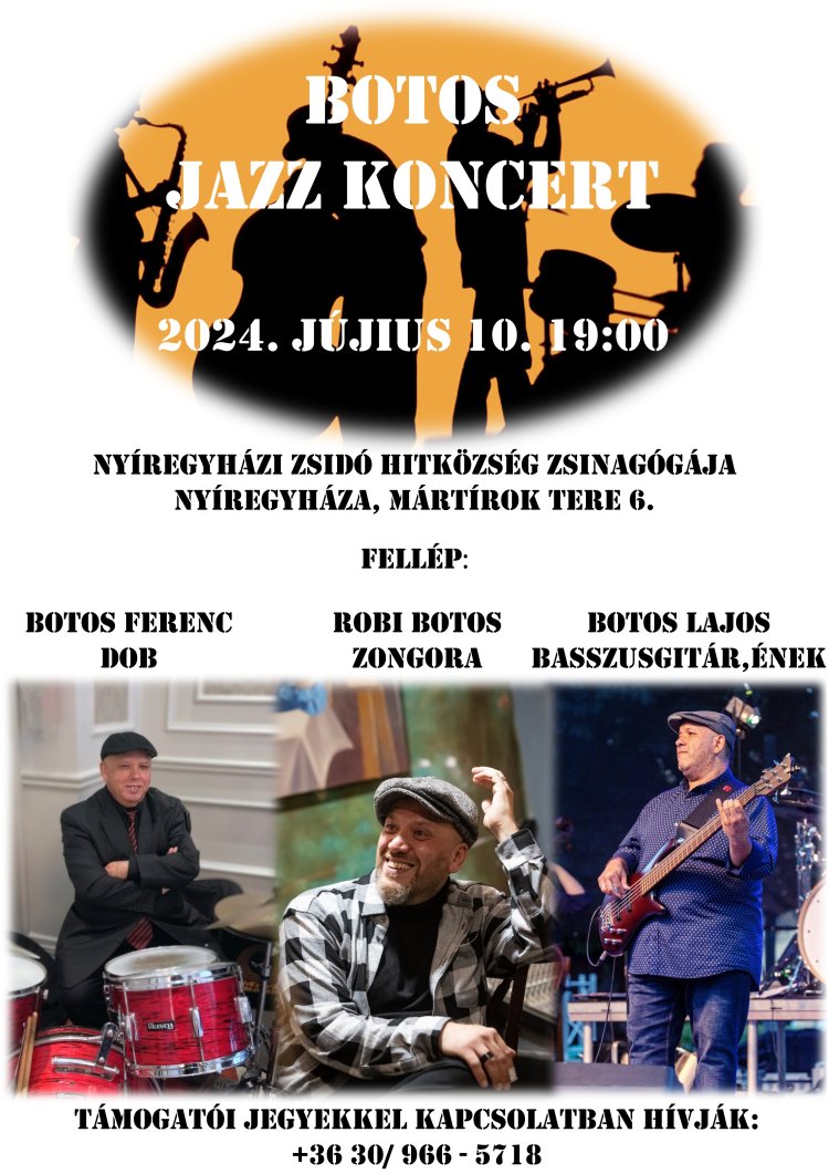 A Kanadából hazalátogató Botos Ferenc(Pöttyös) dobos, és két fia, a világhírű Robi Botos jazz zongorista, és Botos Lajos basszusgitáros énekes ad koncertet a nyíregyházi zsinagógában.