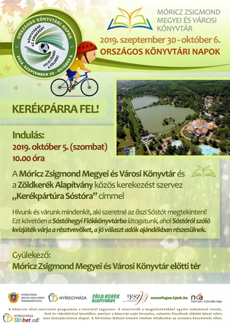 A Móricz Zsigmond könyvtár és a Zöldkerék Alapítvány közös kerekezést szervez az őszi színekben pompázó Sóstóra, október 5-én.