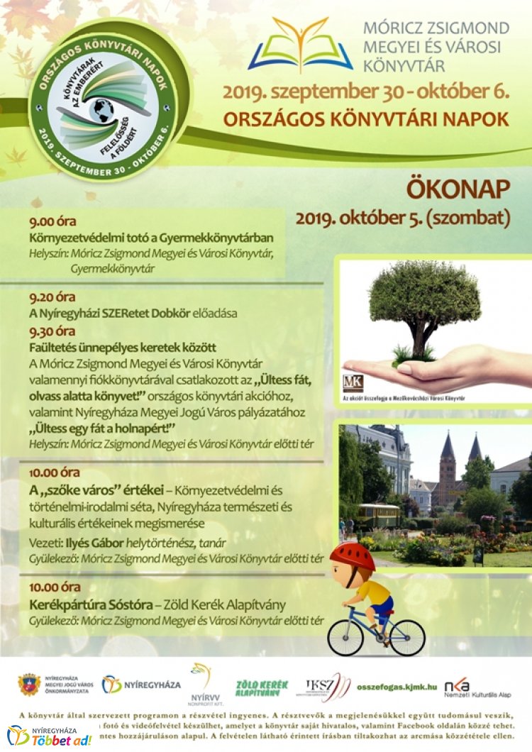 Faültetés, a „szőke város" értékei (környezetvédelmi és történelmi-irodalmi séta), kerékpártúra Sóstóra várja a városlakókat október 5-én az Országos Könyvtári Napok nyíregyházi programsorozatában.