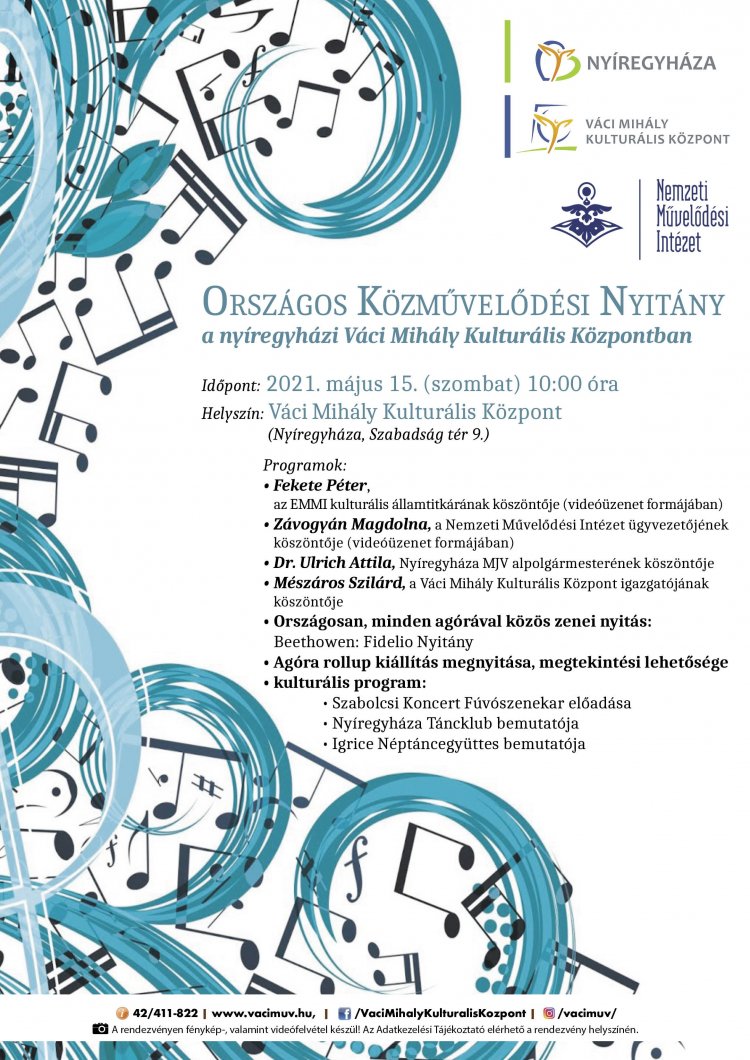 A Nemzeti Művelődési Intézet tizennégy magyarországi agóra részvételével, köztük a nyíregyházi Váci Mihály Kulturális Központtal, valamint az akcióhoz kapcsolódó közel ezer közművelődési intézménnyel 2021. május 15-én 10 órától országos közművelődési megnyitó eseménysorozatot valósít meg. A nyíregyházi program: