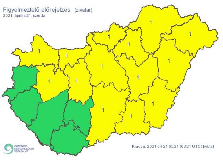 Főként a Dunától keletre várható elszórtan zivatarok kialakulása, de néhány zivatar a Dunántúl északi felén sem kizárt. Ezek az esti órákra fokozatosan legyengülnek, illetve megszűnnek.