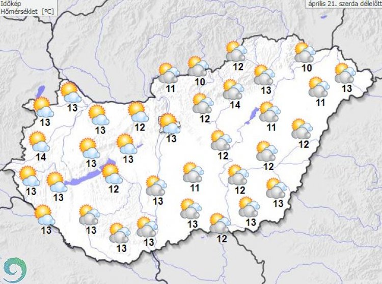 A hőmérséklet délután 14 és 20 fok között várható, a Dunántúlon mérhetjük a magasabb hőmérsékleteket. Késő estére többnyire 5 és 10 fok közé hűl le a levegő.