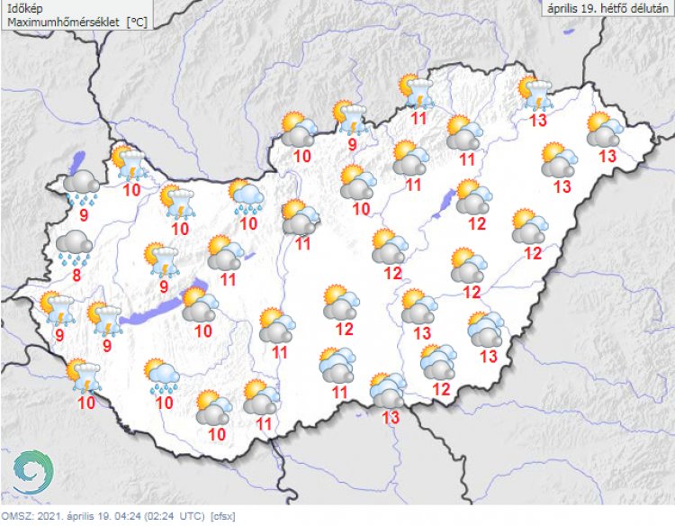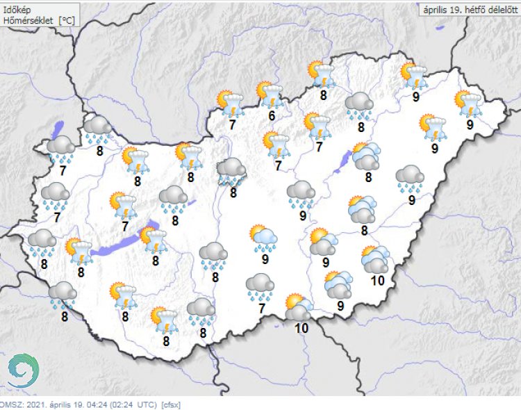 Később egyre többfelé csökken, illetve begomolyosodik a felhőzet, rövid időre a nap is kisüthet, de a Nyugat-Dunántúlon és az északi megyékben néhol tartósan borult marad az ég. Ekkor elszórtan alakulnak ki záporok, északkeleten és a Dunántúlon zivatarok is.