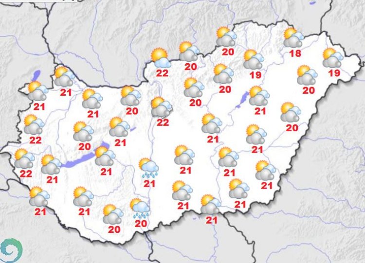 Elszórtan alakulhat ki zápor, esetleg zivatar, amelyre nagyobb esély a középső országrészben van. Az északi, északkeleti szél nagy területen lesz élénk, olykor erős. A legmagasabb nappali hőmérséklet 18 és 23 fok között valószínű. Késő estére 10 és 16 fok közé hűl le a levegő.