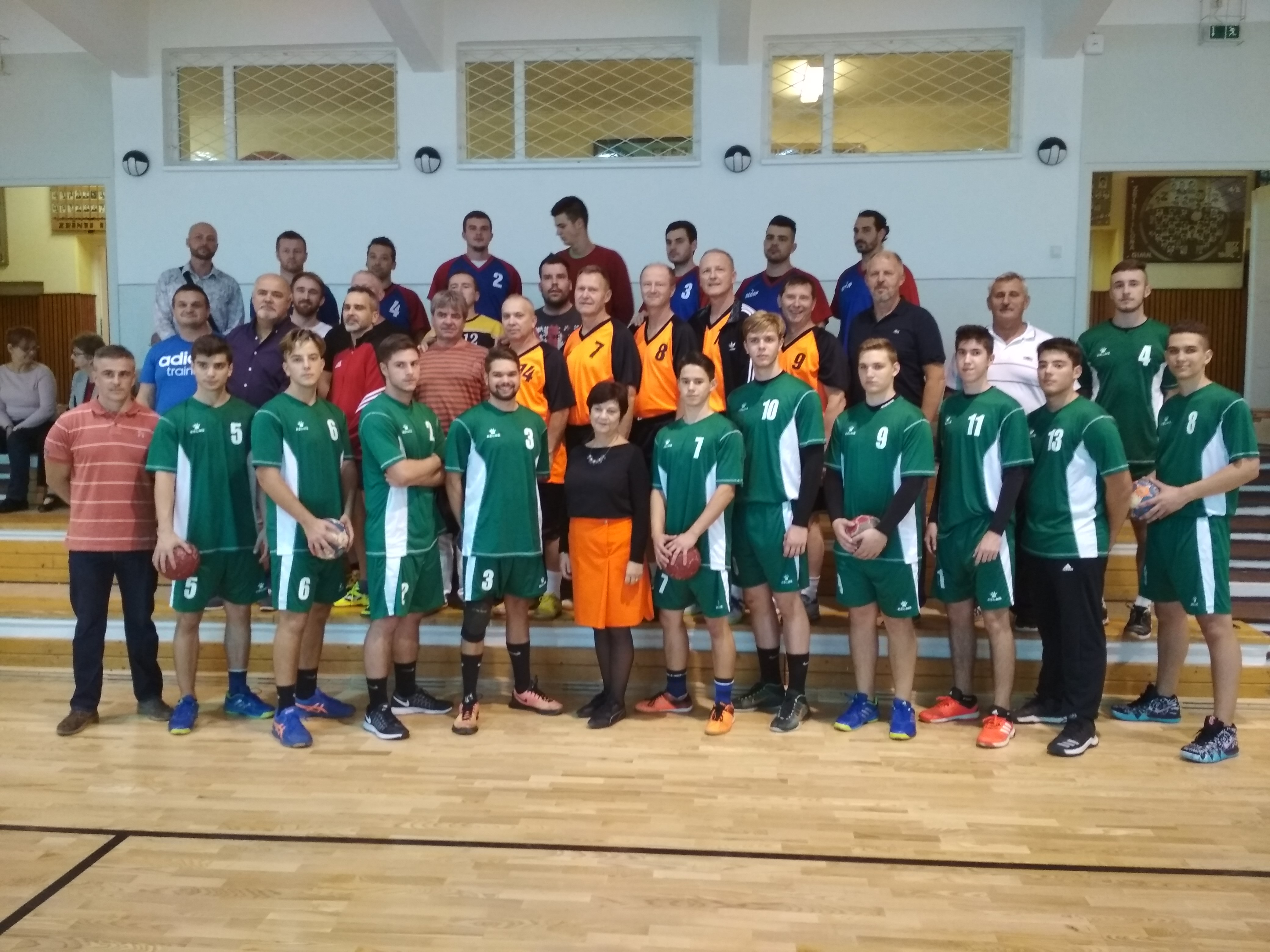 Márton Árpád, és a Mádi testvérek már a pályán melegítenek, Pethő Károly inkább a kispadot választja. Hiába, az a térd már nem a régi. Hanufer Sándor kicsit késve, de annál lelkesebben érkezik, a fiatalok közül Pacza Andráson ugyanúgy áll a kapusmez, mint fénykorában. Tarnavölgyi Gergely sem változott sokat, és a kézilabdától sem szakadt el.