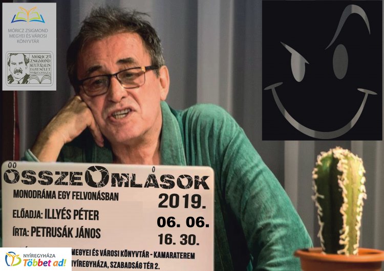 Petrusák János Összeomlások című monodrámáját adja elő Illyés Péter június 6-án 16.30 órától, a Móricz Zsigmond könyvtárban.