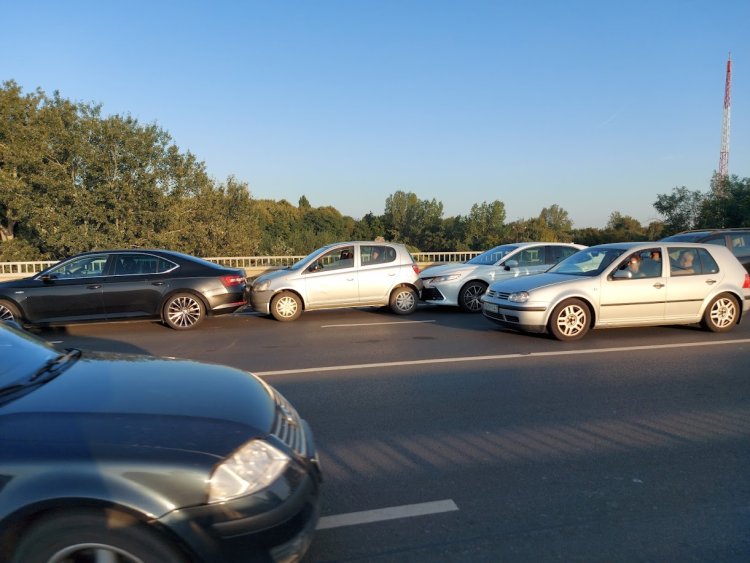 Három jármű állt, a mögöttük közlekedő sofőr pedig beléjük hajtott és összetolta a kocsikat. Személyi sérülés nem történt, az anyagi kár jelentős.