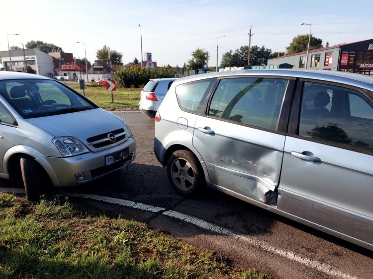 Két személygépkocsi ütközött össze a Kállói út, Tüzér utca és Kéményseprő utca körforgalmában.