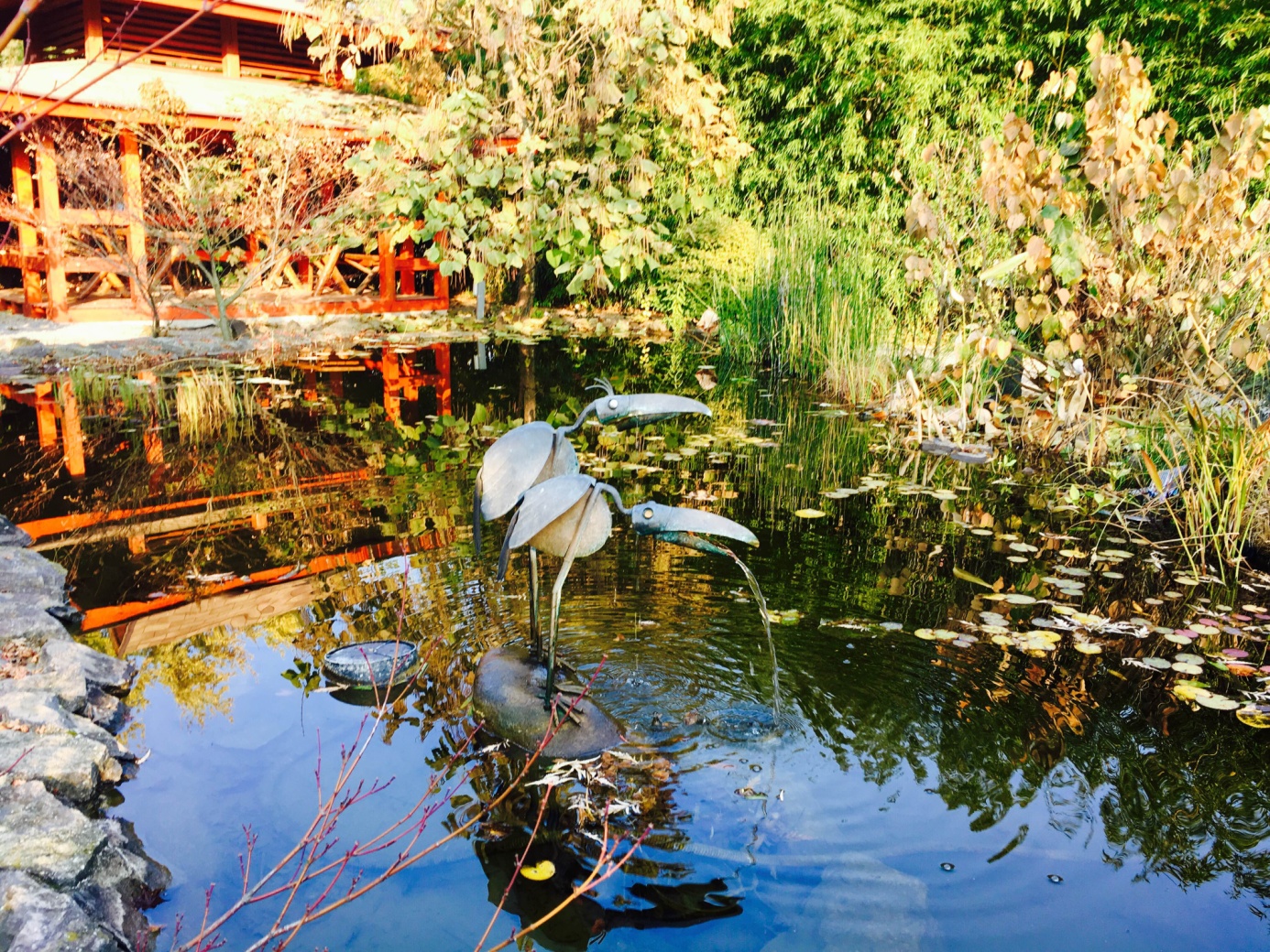 Mielőtt elhagynánk Nyíregyháza legszebb kertjét, érdemes utolsó állomásként elidőzni a Japánkertben, megcsodálni az aranyhalakat, és ha időben érkezünk, talán még láthatjuk, ahogy a kanadai júdásfa lehullajtja utolsó levelét!