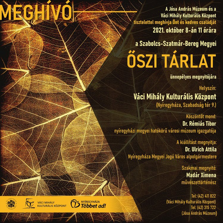 A Szabolcs-Szatmár-Bereg megyei képzőművészek kortárs bemutatója, az Őszi Tárlat fogadja október 8-tól a Váci Mihály Kulturális Központba látogatókat. A kiállítás október 31-ig látogatható.