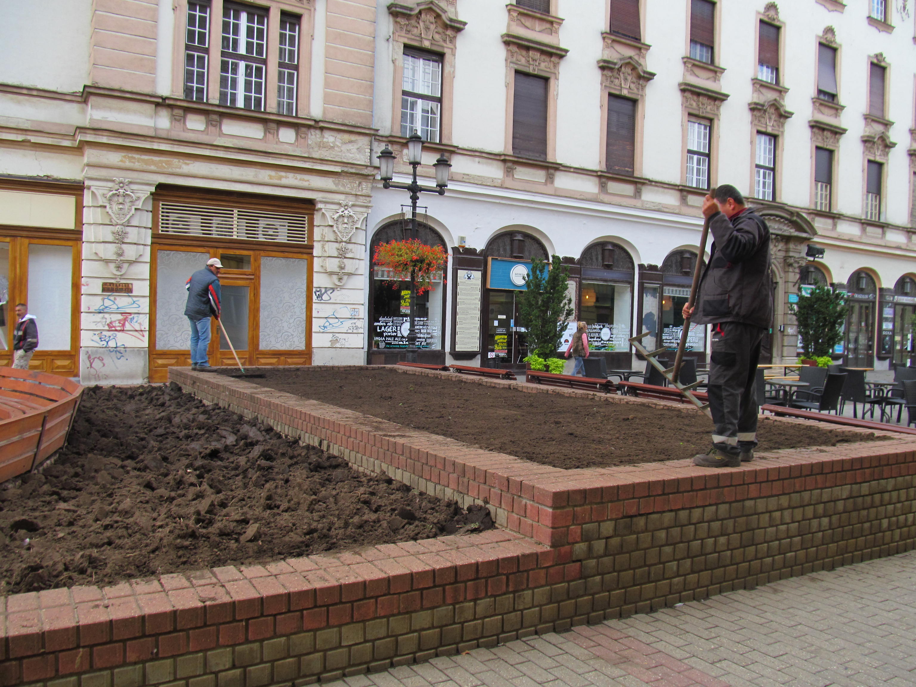 Természetesen a népszerű mintázott ágyásokat is kialakítják, a könyvtár előtti raszter szerelmes gerléket, a posta előtti népi motívumokat, a sárga dombháznál található virágórát, az Eötvös iskola előtti sárga tengeralattjárót ábrázol majd. A Petőfi teret és a Hősök terét hagyományosan a város és a nemzet színei díszítik.