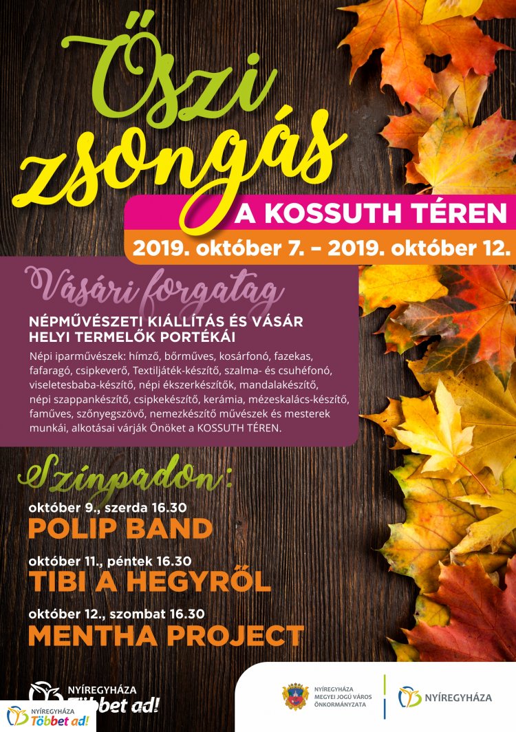 Vásári forgatag, helyi termelők népművészeti portékái, koncertek várják a városlakókat október 7-12. között a Kossuth téren.