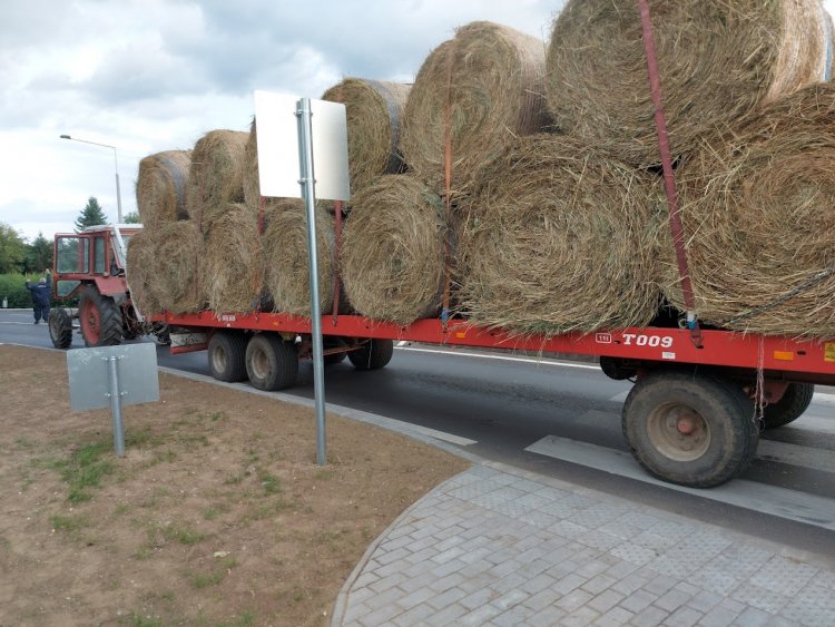 Neki ment egy táblának egy traktor az új napkori körforgalomnál.