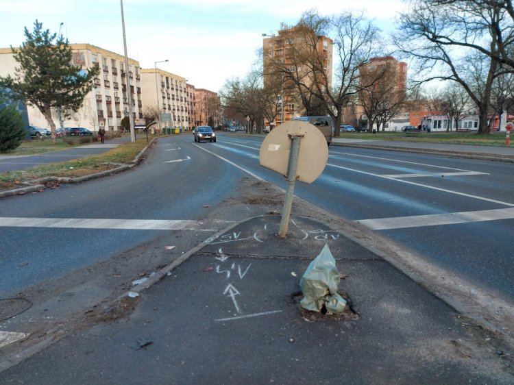 Szombaton későn este a Vasvári Pál utca – Északi krt. sarkán egy kanyarodó autós kidöntötte a jelzőlámpa oszlopát és egy táblát is, majd ezt követően elhajtott a helyszínről.