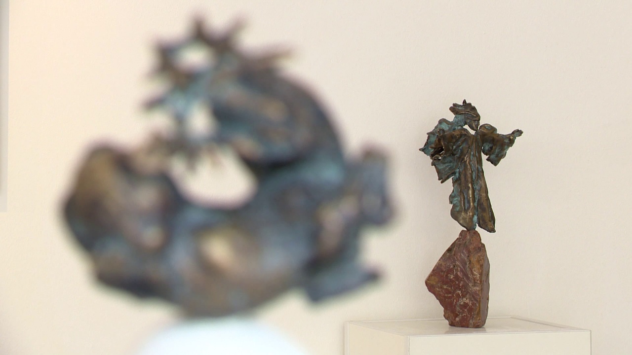 Czigándy Varga Sándor műkő és üveg szobrokat állít ki, ezekkel kísérletezett.