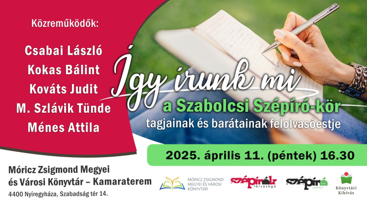 Így írunk mi címmel a Szabolcsi Szépíró-kör tagjai és barátai tartanak előadást.