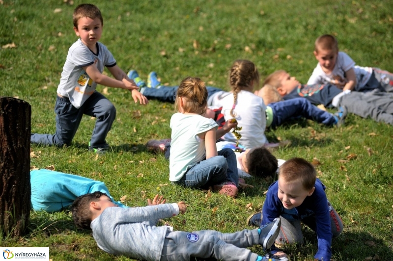 Egy csapat óvodás lepte el kedden délelőtt a Nyíregyházi Egyetem parkját, ahol megcsodálták az éledező apró növényeket is.