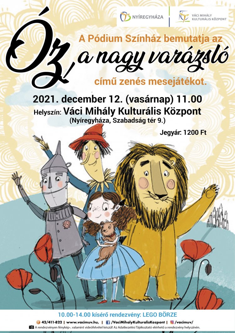 A Pódium Színház Óz, a nagy varázsló című zenés mesejátéka várja a gyerekeket december 12-én, a Váci Mihály Kulturális Központban.