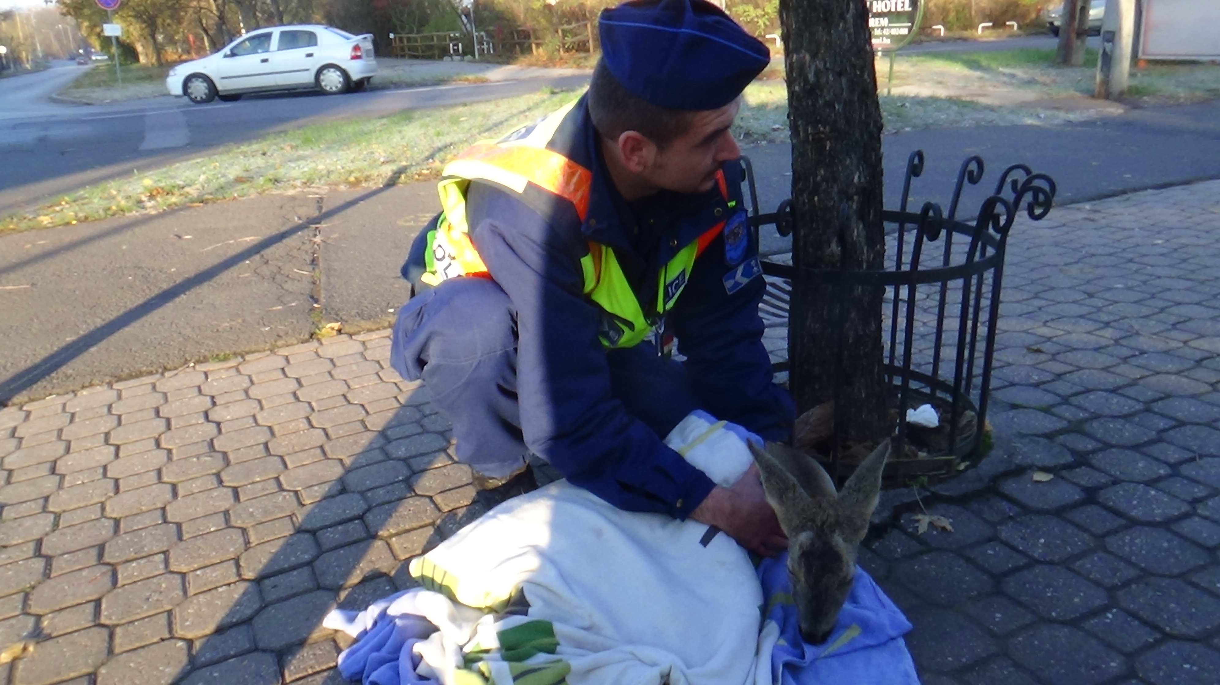 Őzet gázoltak a reggeli órákban egy belváros közeli csomópontban. A közelben tartózkodó állampolgárok gyorsaságának köszönhetően a vad hamar jó kezekbe került, rövid időn belül megérkeztek a nyíregyházi járőrök, és dr. Kassai József állatorvos is.