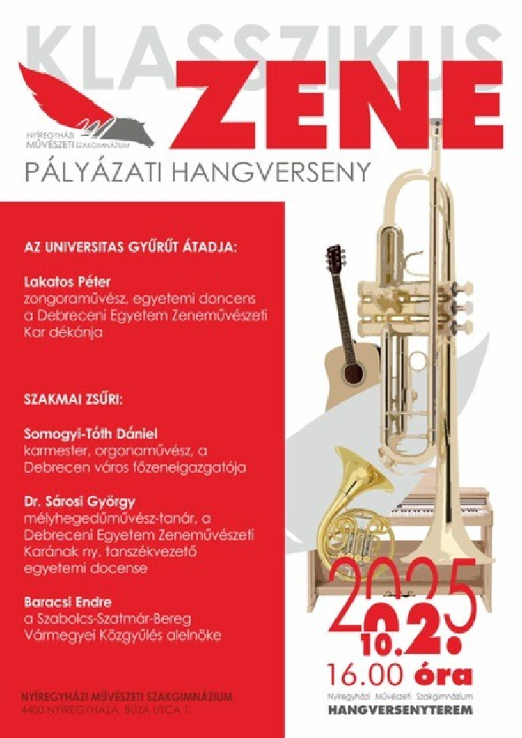 A dicsőség és az Universitas gyűrű a tétje a Nyíregyházi Művészeti Szakgimnázium hagyományos, klasszikus zenei pályázati hangversenyének. 2025. február 10-én véget ér a zeneművészetis növendékek életének egy szakasza, hiszen ekkor rendezik meg a Búza utcai hangversenyteremben a sok felkészülést igénylő bemutatkozási lehetőséget.