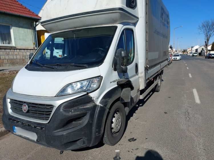Egy parkoló kisteherautónak ütközött egy jármű, nem tartott kellő oldaltávolságot, és jelentős anyagi kárt okozott.