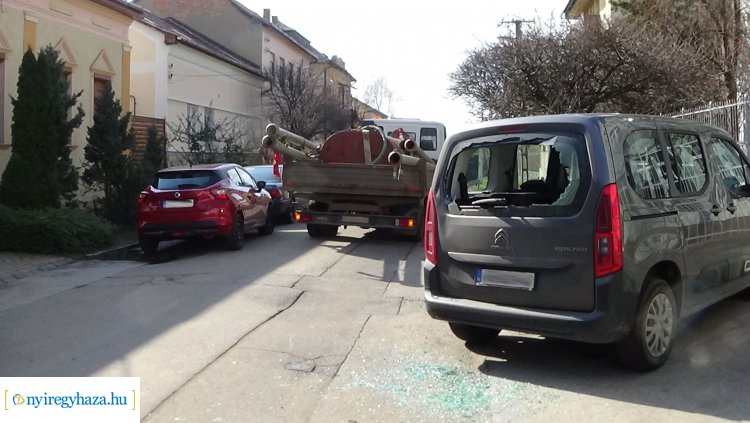 Parkoló személyautónak ütközött egy teherautó a Színház utcán, jelentős az anyagi kár