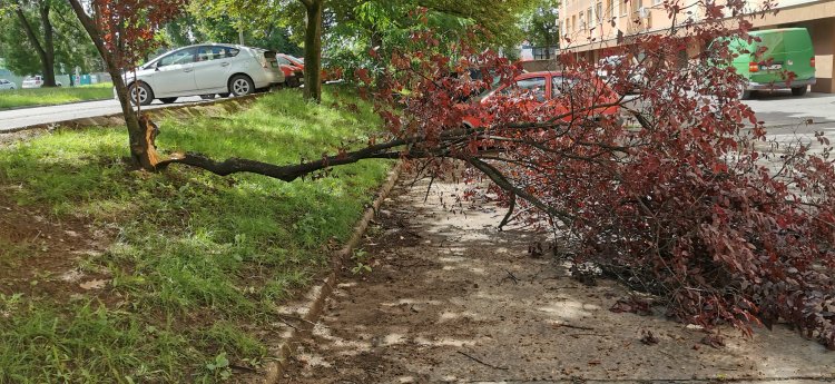 Kettétört egy vadszilvafa az erős szélben a Korányi Frigyes utcán. Az ág a parkolóra esett, szerencsére nem állt ott gépjármű. A NyírVV elszállította az ágat.