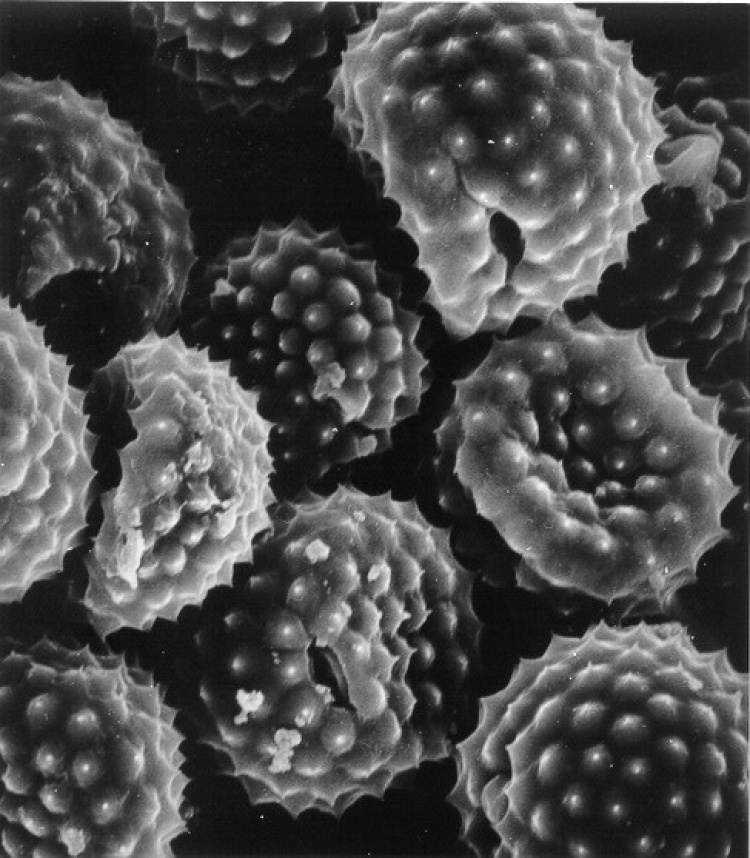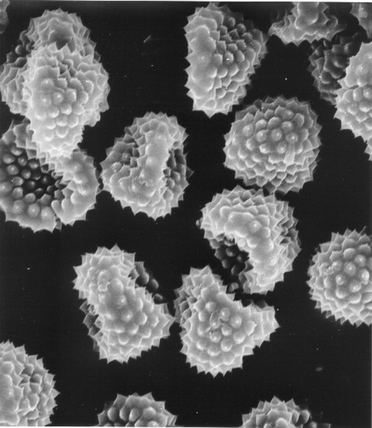A pollenekről a Hitachi S800 típusú elektronmikroszkóppal készültek a képek. A fotókon jól láthatóak a málna termésére emlékeztető pollenformák, amelyek szennyezett területekről származnak