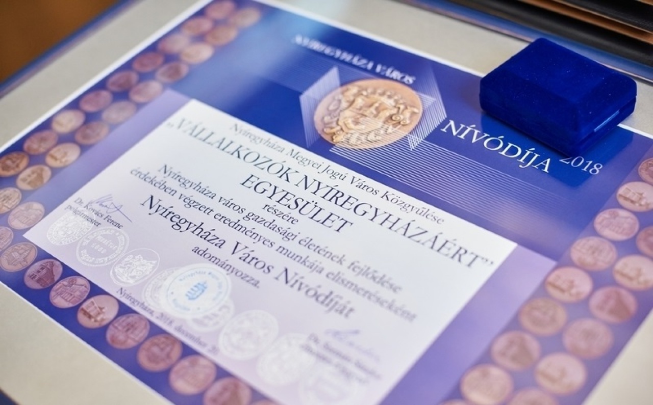 Nyíregyháza Megyei Jogú Város Közgyűlése kimagasló tevékenységéért, megbecsülése és tisztelete jeléül a „Vállalkozók Nyíregyházáért” Egyesület részére a „Nyíregyháza Város Nívódíjat” adományozza.