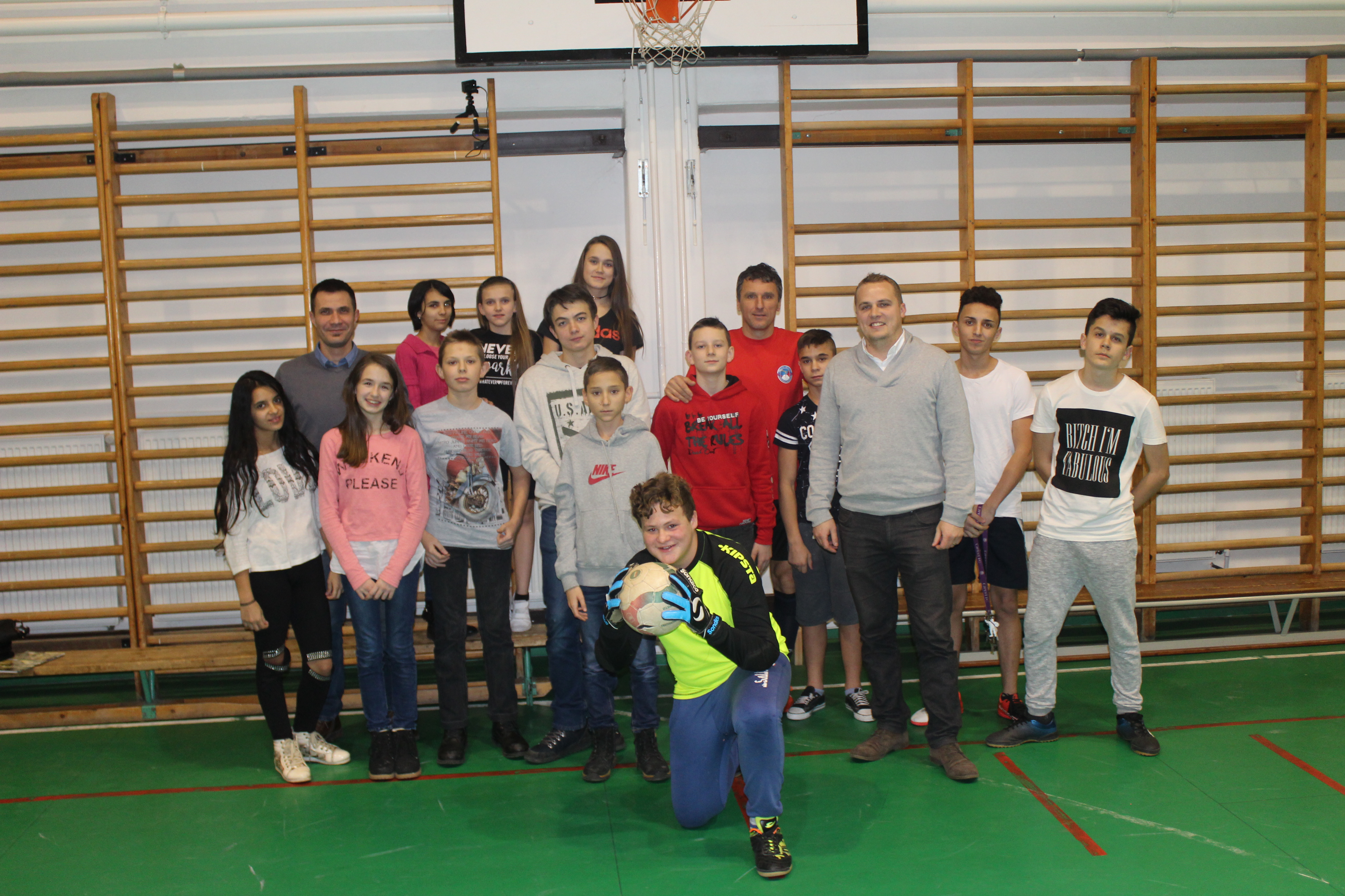 Fél 7 közeledtével a számtalan kérdés után lehetőség volt fotózkodni a vendégekkel és autogramot is osztottak, melyet a gyerekek és a felnőttek is egyaránt élveztek. Háromnegyed 7-kor a foci gyakorlati részét csodálhattuk meg, amikor a tornateremben az alsós gyerekek és a felsős gyerekek is alkottak 2 csapatot. Az izgalmas mérkőzéseken a játékvezető természetesen Norbi volt, a kommentátor Máté, Zoli pedig játszott a mérkőzéseken.