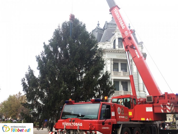 Pénteken délután helyére került a 2019-es városi karácsonyfa, mely közel 16 méter magas, és több mint 40 éves. Egy kertvárosi család ajánlotta fel. A tűzoltóság és a NYÍRVV szakemberei küzdelmes órák után szállították szokott helyére a fát, melynek díszei idén arany-fehér színben pompáznak.