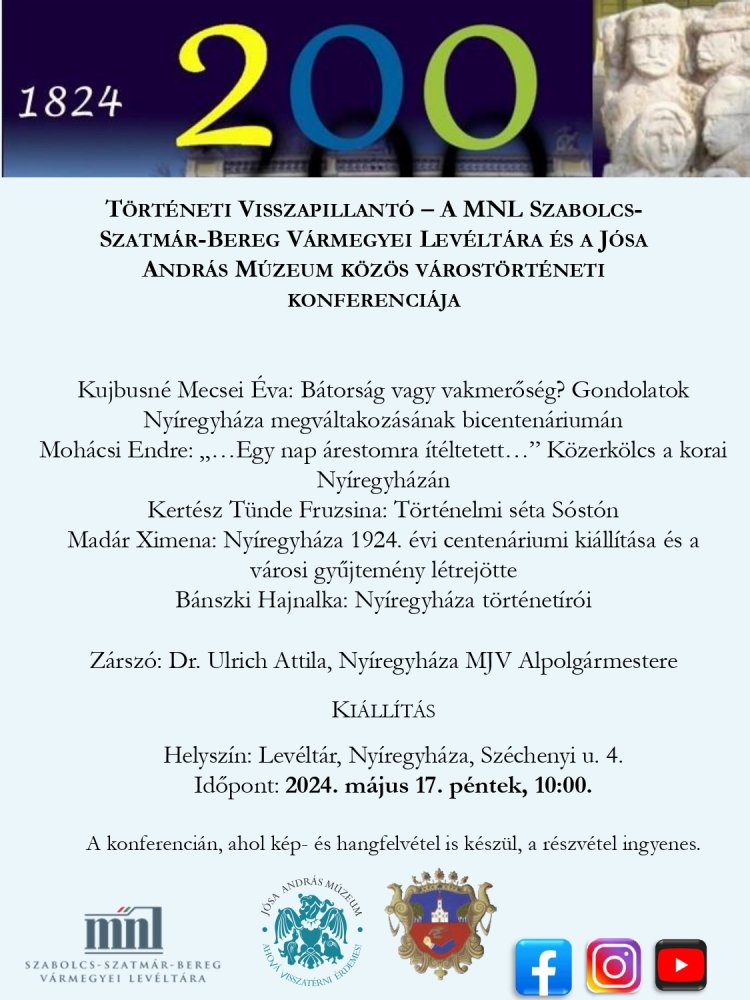 Az országosan is ritkaságszámba menő örökváltsággal földesúri jogokat nyert gazda és iparos közösség új utakon indult el. 2024-ben a Károlyi örökváltság bicentenáriumának alkalmával a levéltár különféle módon igyekszik megismertetni Nyíregyháza múltjának forrásait. A Városnapon a Jósa András Múzeummal karöltve konferenciát szerveznek, amelyen a levéltár és a múzeum munkatársai tartanak előadásokat a város történetének egyes fejezeteiről.