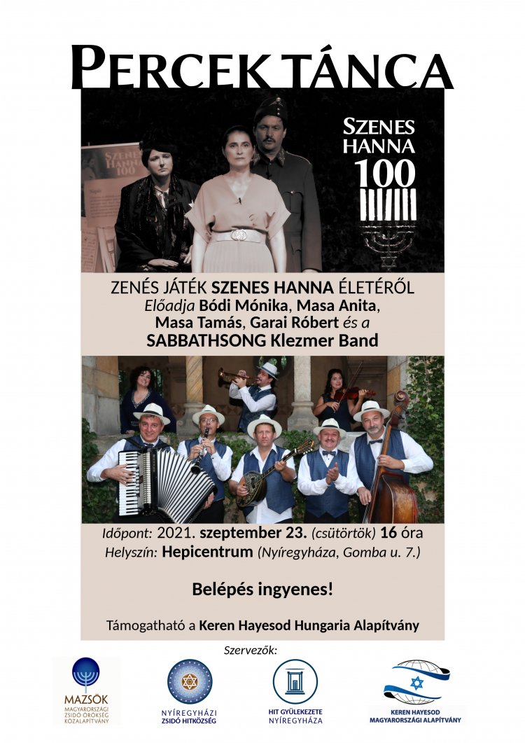Szenes Hanna magyar költő, zsidó származású brit ejtőernyős, izraeli nemzeti hős születésének 100. évfordulója alkalmából emlékestet rendeznek szeptember 23-án a Hepicentrumban. A megemlékezésen a költő életét feldolgozó Percek Tánca című zenés játékot is bemutatják.