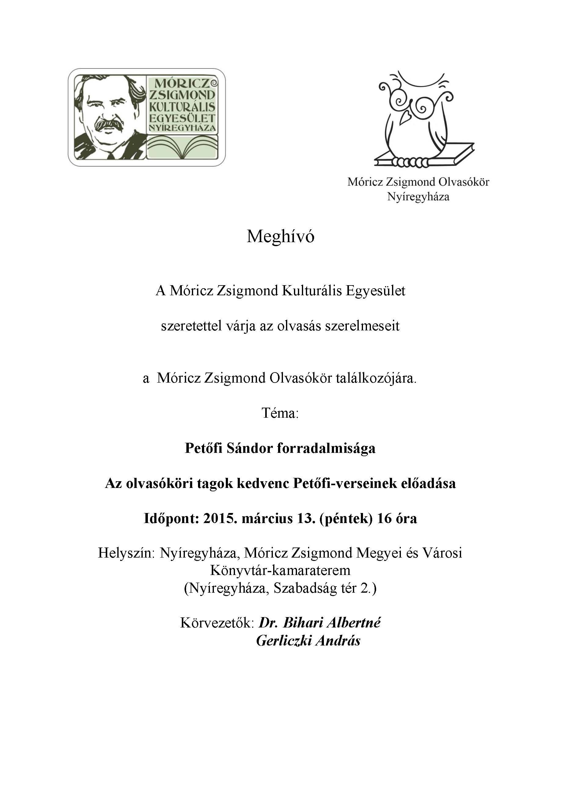 A Móricz Zsigmond Olvasókör találkozója március 13-án.