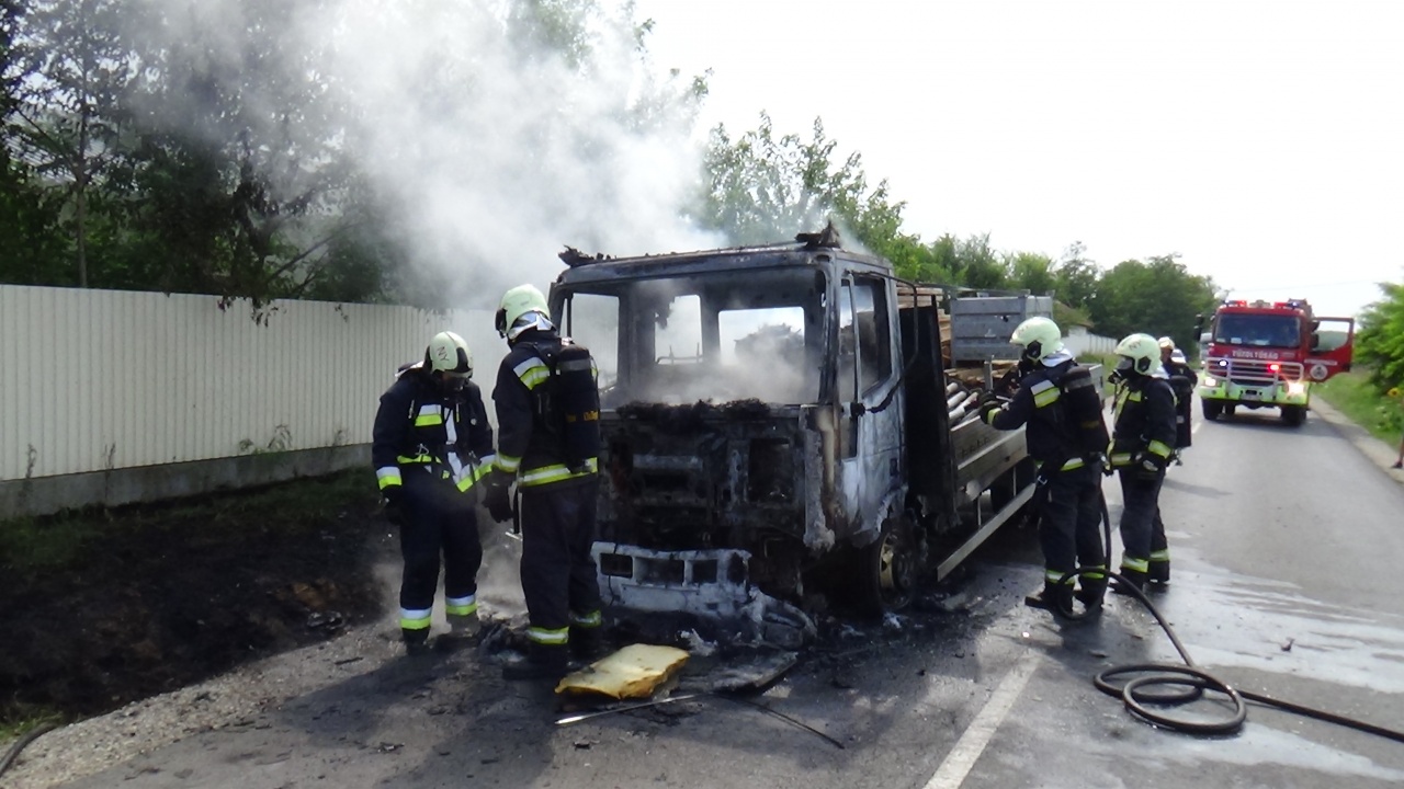 A sofőr időben kiszállt a járműből, a kiérkező tűzoltók pedig két fecskendővel fékezték meg a lángokat.