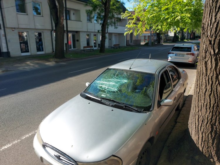 Megrongálták egy személygépkocsi szélvédőjét vasárnapra virradóra.