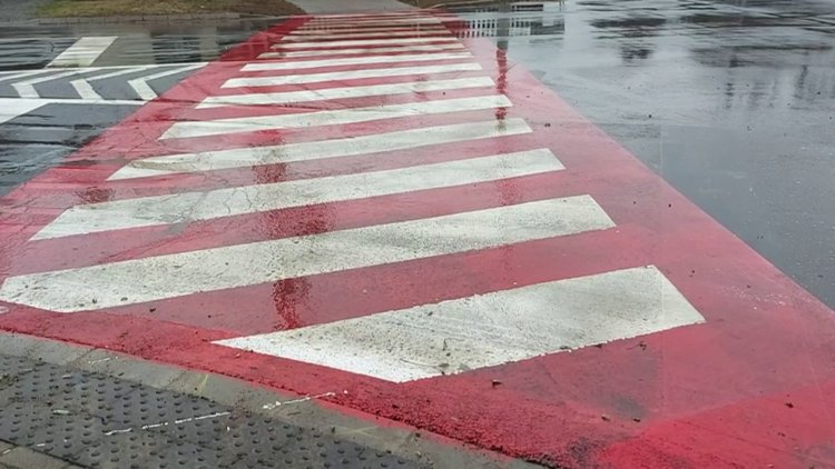 Pirosra festettek és így még figyelemfelkeltőbbé tettek egy zebrát Sóstóhegy belterületén