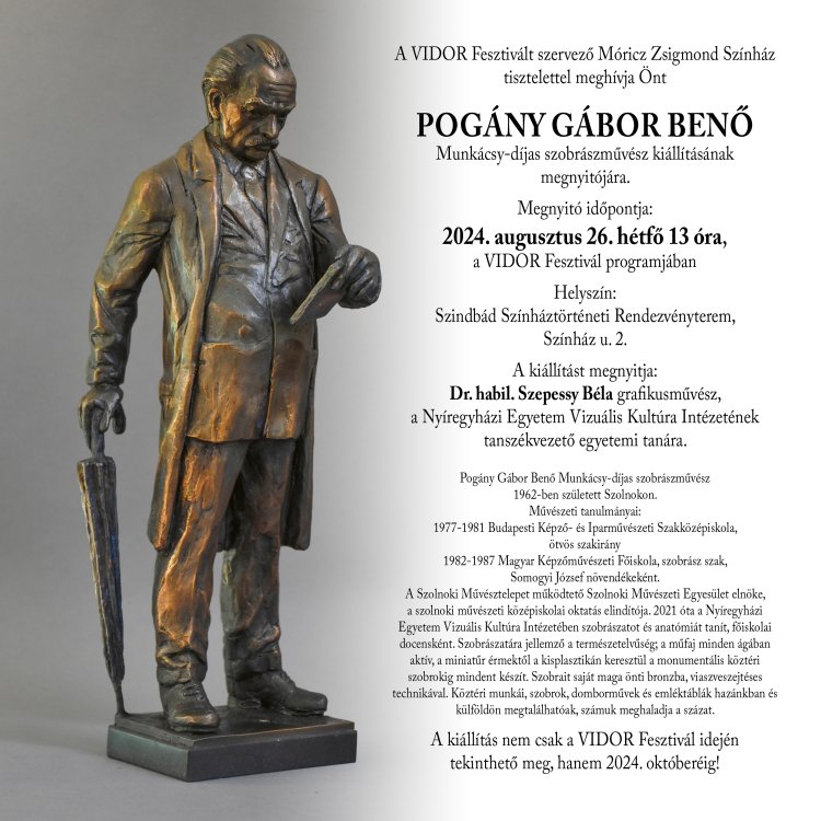 Pogány Gábor Benő Munkácsy-díjas szobrászművész alkotásaiból nyílik kiállítás a Vidor Fesztivál alatt.