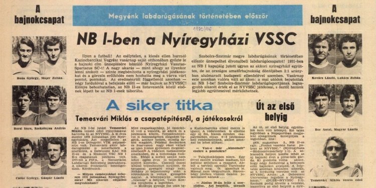 Fontos nap volt 1980. május 18. a nyíregyházi sport életében. Az NYVSSC NB-II-es labdarúgó együttese a Kazincbarcikát fogadta a 34. fordulóban, és a tét az élvonalba kerülés volt.. 16 000 néző látogatott ki a Városi Stadionba, hogy láthassa a sporttörténelmet, a nyíregyházi csapat ugyanis először harcolhatta volna ki az NB-I-es tagságot. Bár a borsodiak végül borsot törtek a mieink orra alá, a többi eredmény úgy alakult, hogy a Spartacus az élvonalba jutott. Mindennek ma pont 40 esztendeje!