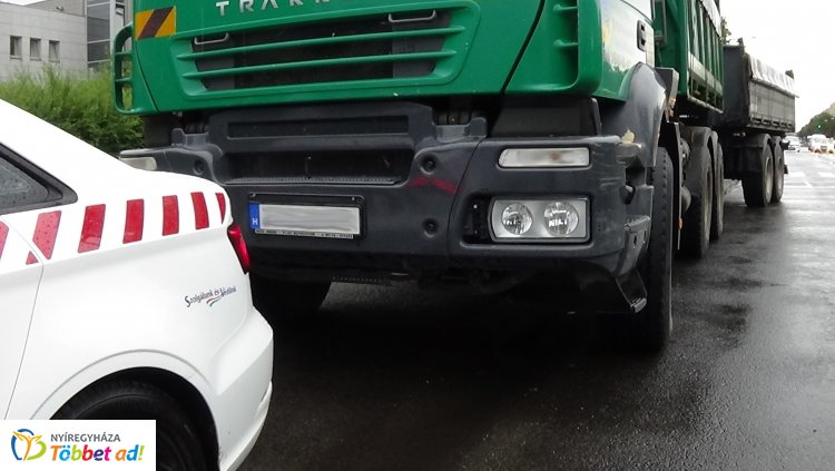 Pótkocsis teherautó hajtott neki az előtte közlekedőnek az Állomás téren